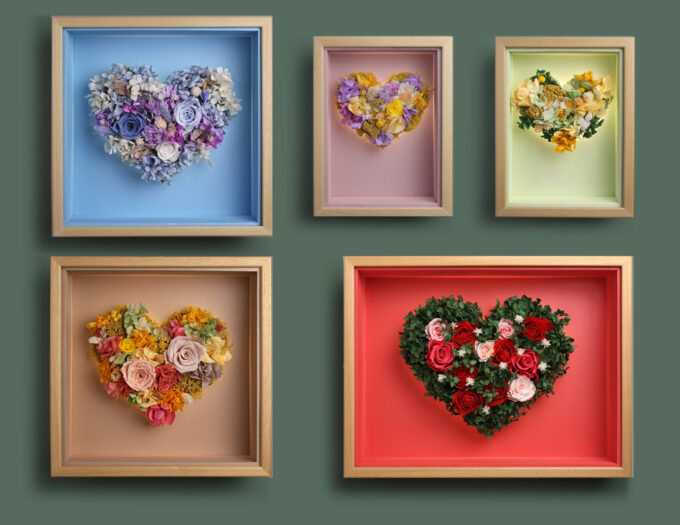 Los corazones de flores preservadas de Singular Luz son piezas únicas. Mantienen su color y textura como el primer día, sin necesidad de mantenimiento.